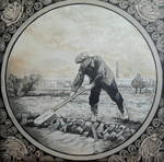 Tegels geschilderd in sepiastijl met olieverf
